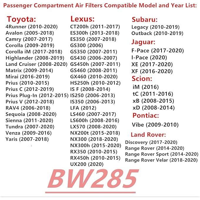 filtre habitacle Toyota, Range Rover , Camry , Corolla, , Highlander, Prius, RAV4, Range rover, etc
